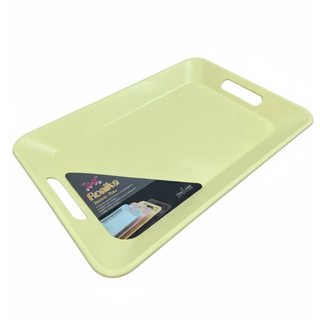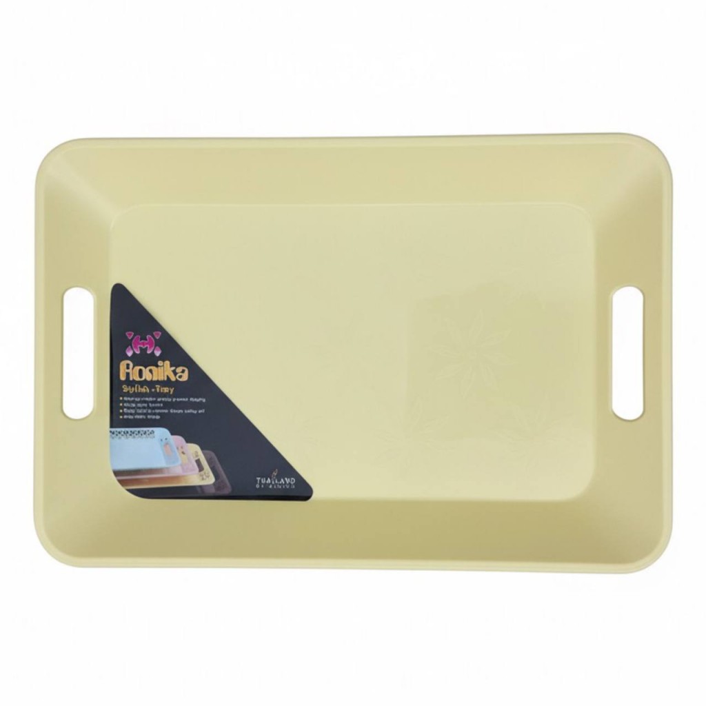 سینی مستطیل رونیکا مدل آرام با دست گیره های یک سره و پس زمینه رنگی ساده مناسب برای انواع آشپزخانه ها و پذیرایی ها هستش و دور تا دور سینی به خصوص روی دستگیره ها با جا انگشتی طراحی شده برای کاربرد و راحتی بیشتر تا در صورت عدم استفاده از دستگیره ها باز هم استفاده از سینی به راحتی امکان پذیر باشد