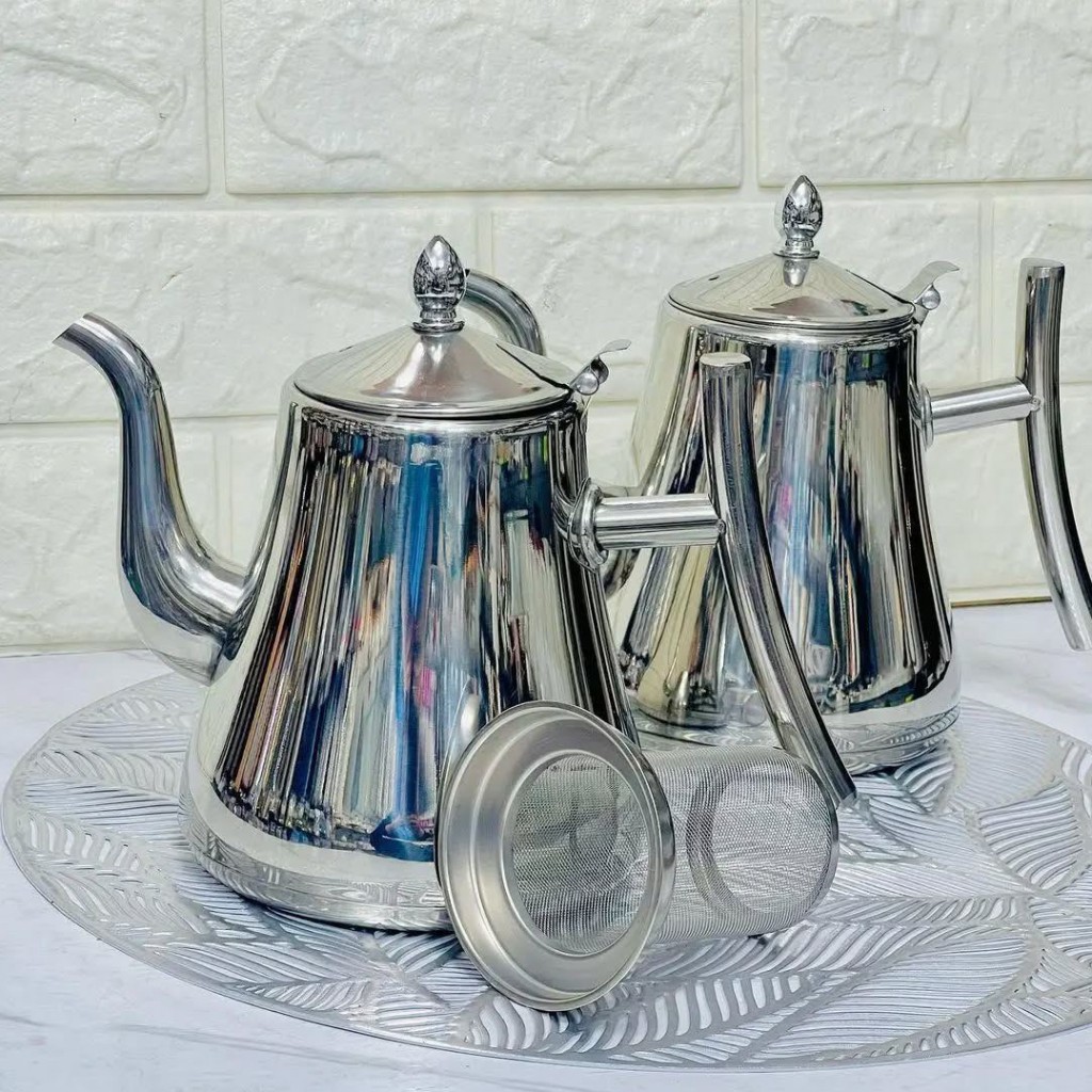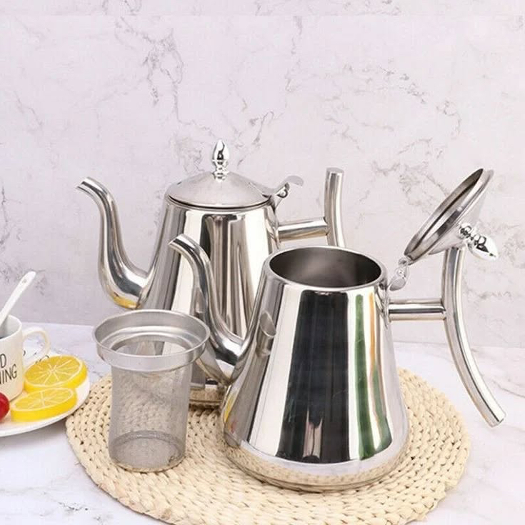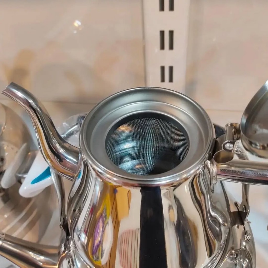 قوری استیل عربی با طراحی کلاسیکی که دارد زیبایی خاصی به آشپزخانه شما می بخشد. این قوری دارای جنس استیل آهنربا نگیر ضد زنگ، تفاله گیر استیل جدا شونده و صافی تفاله گیر جوش شده به لوله قوری است که چای و دمنوش شما را بسیار شفاف و عاری از هرگونه تقاله به شما تحویل می دهد