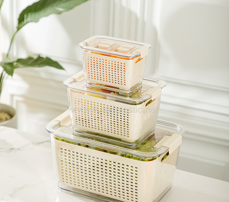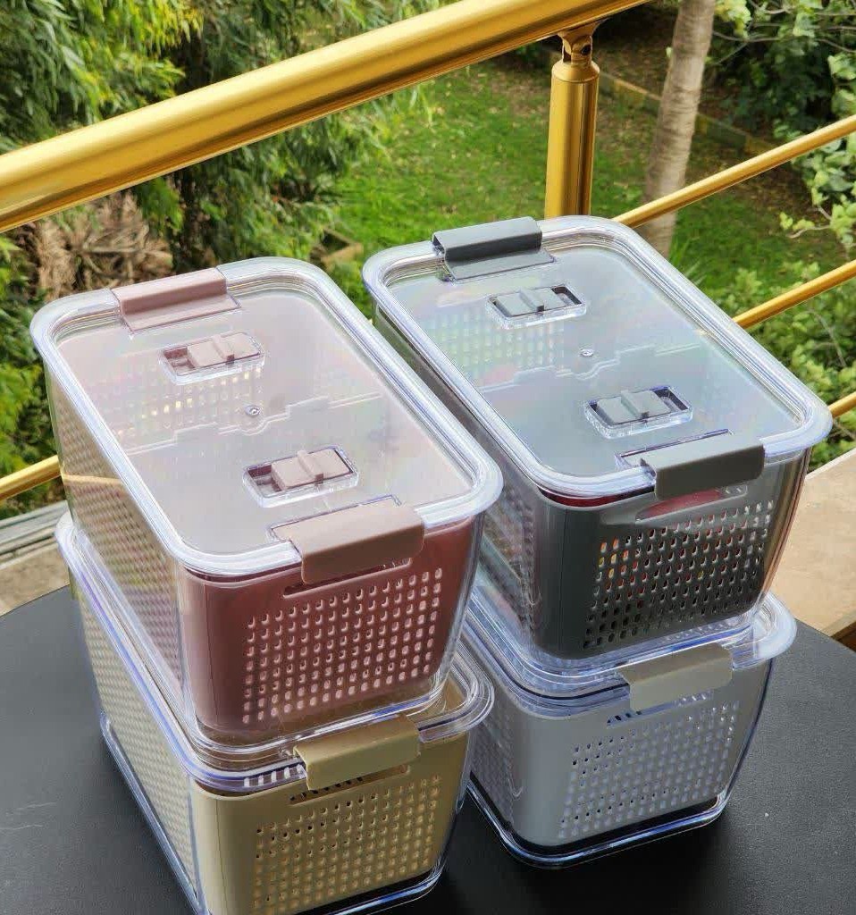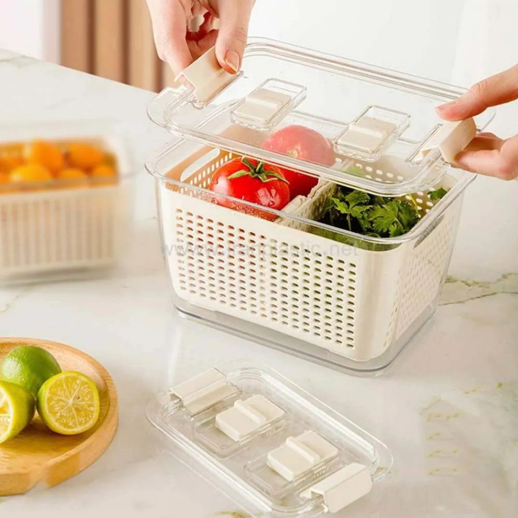 - دارای سبد آبکش داخلی: شستشوی آسان و جلوگیری از جمع شدن رطوبت اضافی در کف ظرف که عامل اصلی فساد است.