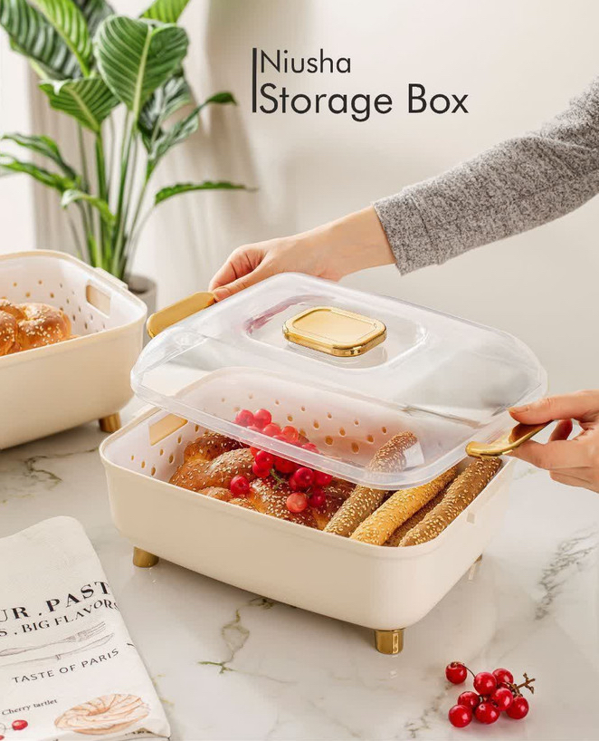 - فضای داخلی جادار و کاربردی: با ابعاد 32*23*15 سانتیمتر، برای نگهداری انواع نانهای حجیم، نان تست، باگت، کیک و شیرینی کاملاً مناسب است.