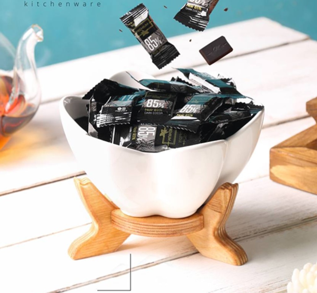 جنس این آجیل خوری از سرامیک و با پایه های چوبی است.