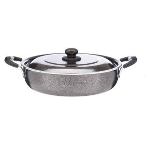 بدنه این تابه از آلومینیومی با ضخامت 2/8 ساخته شده و ساختار بدنه آن کششی(تلفیقی از چدن وتفلون)می باشد. روکش داخلی بدنه تابه نچسب گرانیت میباشد و کاملا بهداشتی روکش بدنه از رنگ کوره ای ایستاتیک سربی می باشد تابه همراه با درب الومینیوم و پوشش داخلی در گرانیت میباشد دسته آن ازجنس الترامید با روکش باکالیت کاملا نسوز می باشد تابه تفلون افسون رنگ سربی برای پخت غذا طراحی و تولید شده پوشش داخلی این تابه از جنس تفلون نچسب و مقاوم تولید شده درب این تابه باکالیت نسوز و دستگیره ی درب باکالیتی نسوز می باشد دسته های مقاوم و محصول دارای بسته بندی محکم و مطمئن میباشد.