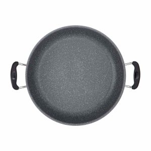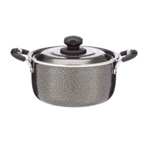 بدنه این قابلمه از آلومینیومی با ضخامت 2/8 ساخته شده و ساختار بدنه آن کششی(تلفیقی از چدن وتفلون)می باشد. روکش داخلی بدنه قابلمه نچسب گرانیت میباشد و کاملا بهداشتی روکش بدنه از رنگ کوره ای ایستاتیک سربی می باشد قابلمه همراه با درب الومینیوم و پوشش داخلی در گرانیت میباشد دسته آن ازجنس الترامید با روکش باکالیت کاملا نسوز می باشد قابلمه تفلون افسون رنگ سربی برای پخت غذا طراحی و تولید شده پوشش داخلی این قابلمه از جنس تفلون نچسب و مقاوم تولید شده درب این قابلمه باکالیت نسوز و دستگیره ی درب باکالیتی نسوز می باشد دسته های مقاوم و محصول دارای بسته بندی محکم و مطمئن میباشد.