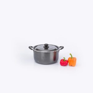 بدنه این قابلمه از آلومینیومی با ضخامت 2/8 ساخته شده و ساختار بدنه آن کششی(تلفیقی از چدن وتفلون)می باشد. روکش داخلی بدنه قابلمه نچسب گرانیت میباشد و کاملا بهداشتی روکش بدنه از رنگ کوره ای ایستاتیک سربی می باشد قابلمه همراه با درب الومینیوم و پوشش داخلی در گرانیت میباشد دسته آن ازجنس الترامید با روکش باکالیت کاملا نسوز می باشد قابلمه تفلون افسون رنگ سربی برای پخت غذا طراحی و تولید شده پوشش داخلی این قابلمه از جنس تفلون نچسب و مقاوم تولید شده درب این قابلمه باکالیت نسوز و دستگیره ی درب باکالیتی نسوز می باشد دسته های مقاوم و محصول دارای بسته بندی محکم و مطمئن میباشد.